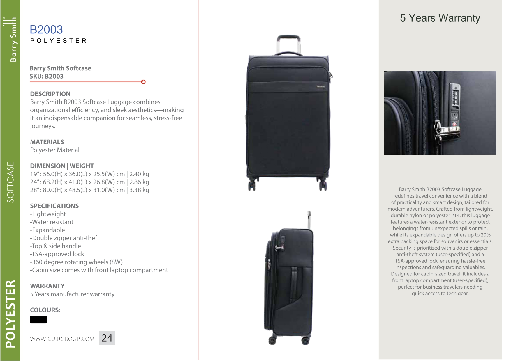 - Cabin Size Comes With Front Laptop Compartment