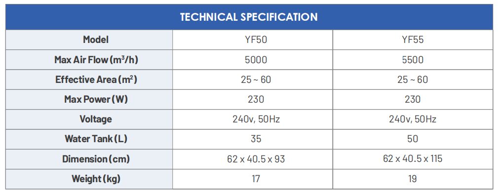 YET® Evaporative Industrial Air Cooler Portable type offers high speed cooling at water temperature and easily movable depending on the change of intended cooling area. It comes with an in-built water tank.
